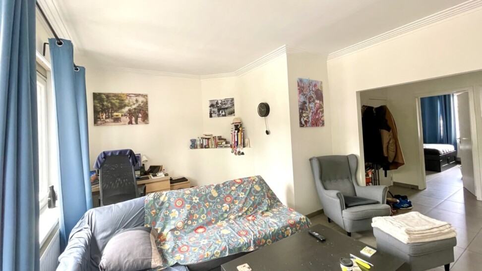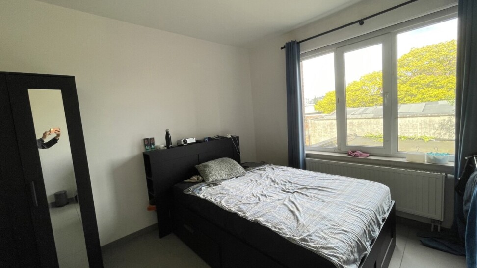 Via de inkomhal kom je meteen in de lichte, open leefruimte met volledig uitgeruste keuken. Verder beschikt het appartement over een badkamer met douche en lavabomeubel en een ruime aparte slaapkamer.