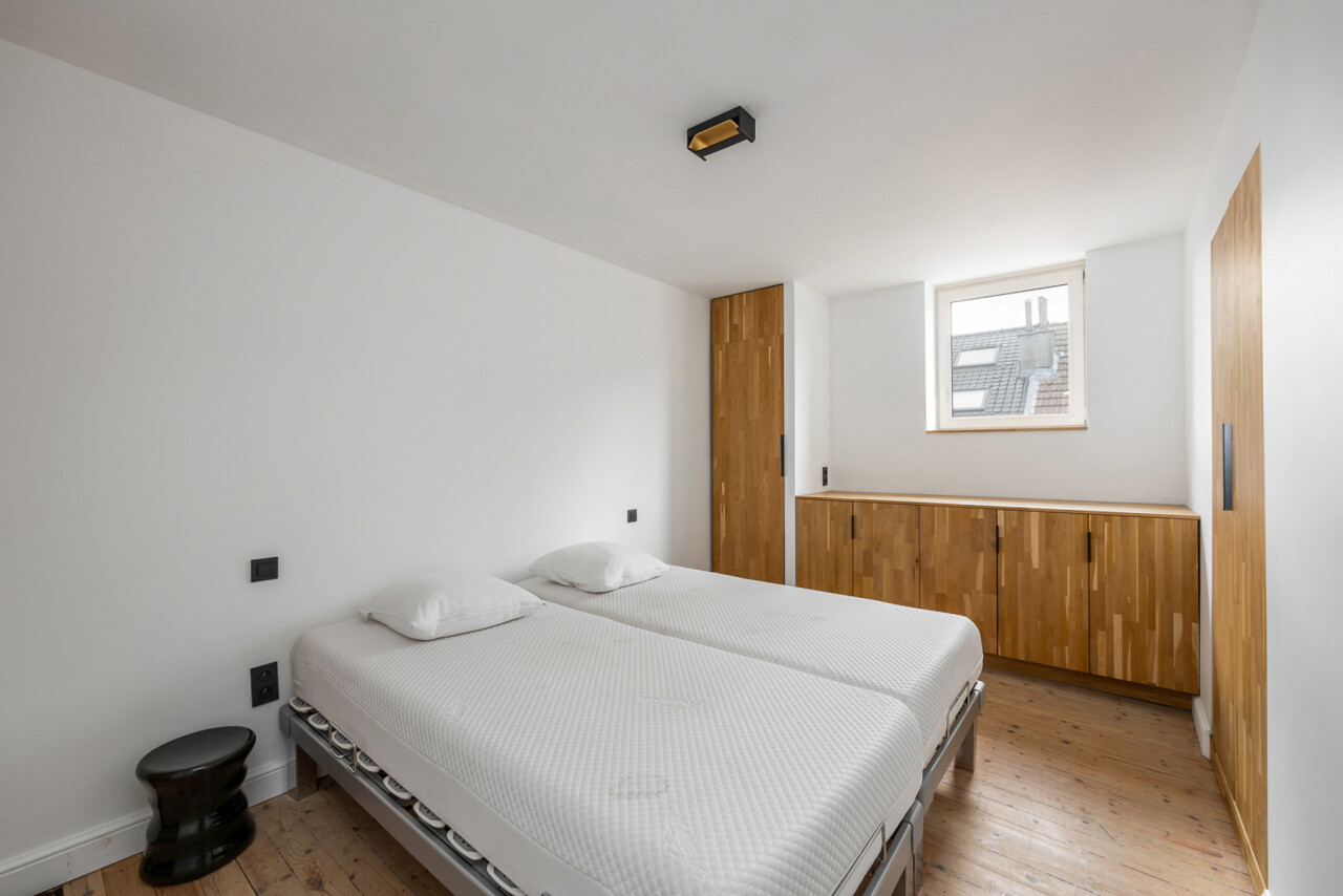 De tweede slaapkamer fungeert nu als open bureau, maar kan eenvoudig weer omgetoverd worden tot een gezellige, aparte slaapkamer.De badkamer is voorzien van een toilet, dubbele wastafel, inloop-regendouche én een heerlijk ligbad om in te ontspannen.
